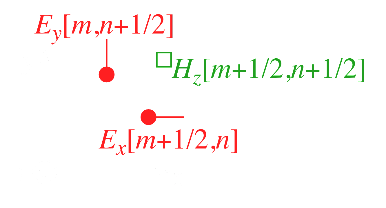 This allows the curl $\left(\nabla \times \right)$ calculations to be most accurate where they are needed. This is called a Yee latice and the method is called Finite-difference time-domain method (FDTD).